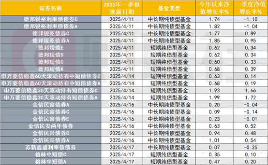 财联社据Choice数据统计,目前已有10只纯债基金(份额合并计)披露了一季度报告。