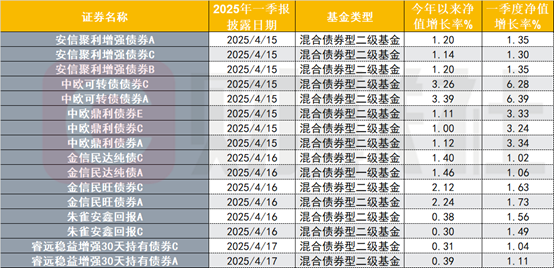 混合债基在一季度表现较好,已披露的债基中一季度净值最多增长了6%,但进入4月后普遍发生回撤。部分混合债基在一季报中表示其增加了纯债配置,用以对冲宏观环境较大的不确定性。